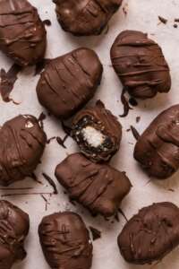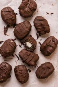 - Αφού γεμίσεις πολύ καλά τους χουρμάδες θα τους βάλεις στην κατάψυξη για 15 λεπτά να παγώσουν.