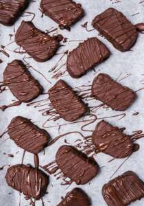 Αν θέλεις, αφού παγώσουν, δημιουργείς στην επιφάνεια τους γραμμούλες με λιωμένη σοκολάτα.
